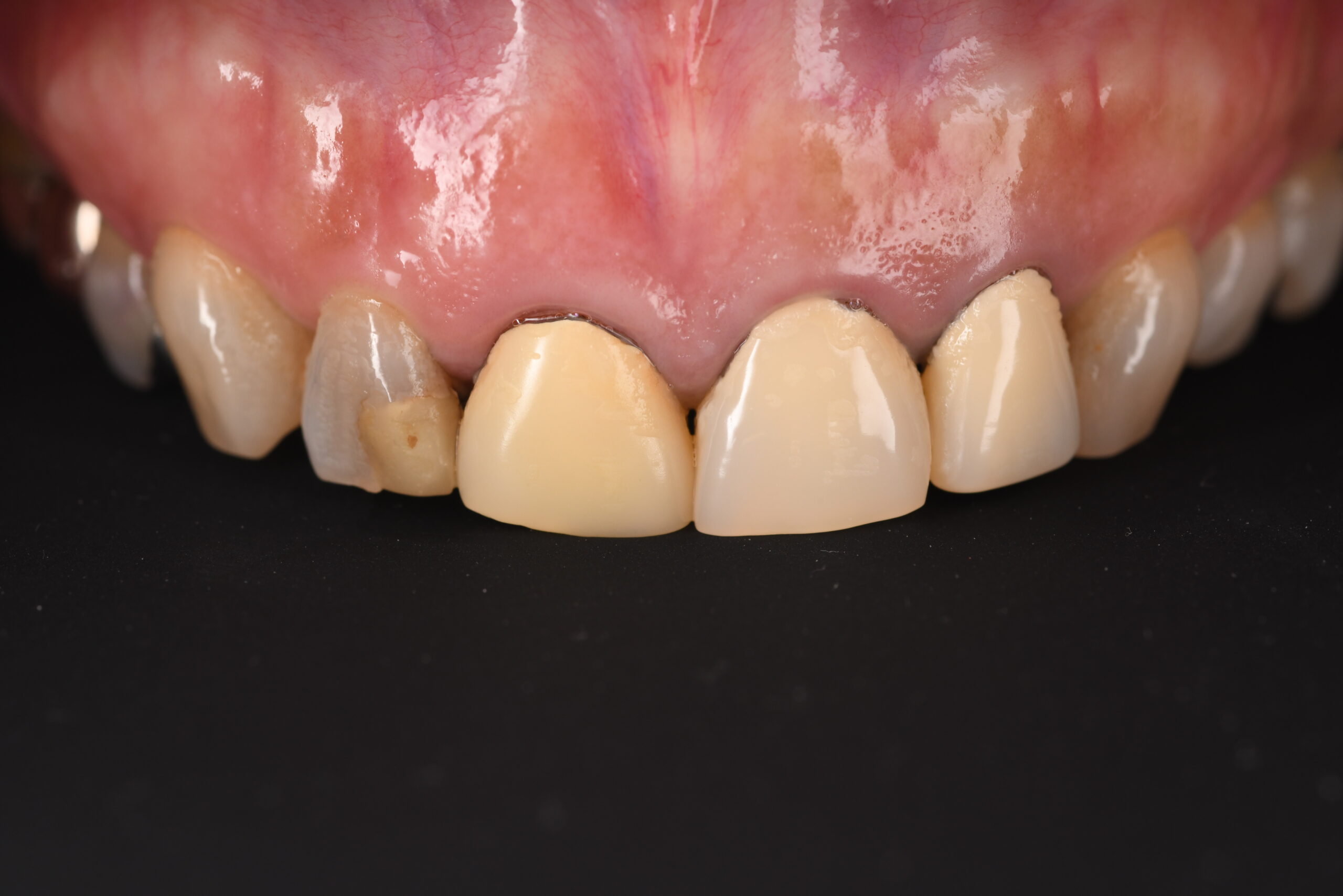 元々骨格的に歯肉と骨のバランスが崩れており、審美的な障害を訴えてご来院された患者さんです。 笑った際に歯肉が見えてしまうということも気にされていたので、歯肉の切除を行い、十分な治癒期間を置いた後にセラミック治療を行いまし […]